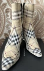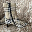 RARE BURBERRY Nova Check Suede, Kitten Heeled Boots Womans Size 37, US Size. These gently loved Burberry house check boots are from our personal collection and smoke free home. Zippers in perfect condition. Soles have a little wear. Burberry nova check suede exterior and leather interior. Kitten heals and cute detailing! Size 37 = US size 7 runs narrow and runs small. Please see photos as they are part of the description.