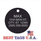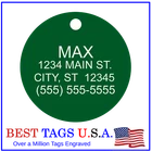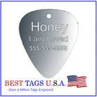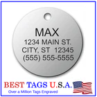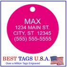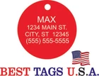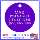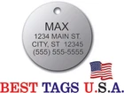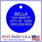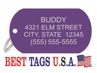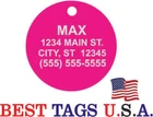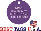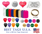 BEST TAGS PERSONALIZED- ENGRAVED WITH REFLECTIVE SAFETY TEXT M A D E I N U. S. A. >>>WE SHIP USPS WITH TRACKING<<< NOTE: Tags are engraved and shipped Friday of each week. Handling time will vary from 1 to 7 days, depending on what day you order. YOUR CHOICE OF: MILITARY DOG TAG (2" x 1.1") 1" Diameter Small CIRCLE 1.5" Diameter Large CIRCLE GUITAR PICK (Standard guitar pick size) 1" HEART ALL TAGS INCLUDE A KEY RING UP TO 5-Lines of Text Engraved per side on Military & 1.5" Circles, 4-Lines on Guitar picks & 1" Circles, 3-Lines on Hearts 2-SIDED TAGS available in drop-down menu if you want engraving on both sides. DEEP DIAMOND ENGRAVED - THE BEST! -LONG LASTING- WON'T RUB OFF LIKE CHEAP LASER ENGRAVING OR INK STAMP =YOU CAN "FEEL" OUR ENGRAVING= TAGS ARE MADE OF LIGHT-WEIGHT DURABLE Anodized Aluminum HOW TO ORDER: 1. Above please select TAG , C O L O R and QUANTITY 2. ENTER your personalization text in the grey box above -OR- You can enter your engraving info at checkout in the Message to Seller BOX. please be sure to CLICK " Message to Seller" -- Or -- Use eBay " Contact Member/Seller " and send the tag information to us ( best_tags) Please read the tag parameters below: ( spaces count as characters ) Less is more on tags. Less Text = LARGER TEXT . 2-SIDED TAGS available in drop-down Please specify your engraving for FRONT and BACK sides, otherwise we will engrave the same info on both sides. Military Style Dog Tag: up to 5 Lines, 24 characters maximum per line Large 1.5” Circle: up to 5 lines, 20 characters maximum per line Small 1” circle: up to 4 lines, 16 characters maximum per line Guitar Pick: up to 4 lines, 14 characters maximum on LINES 1 & 2, (12) on LINES 3 & 4. Heart: up to 3 lines, 14 characters maximum per line Please check for accuracy *We engrave exactly how you enter your text. *Sometimes we need to make layout adjustments to make your tag look its BEST and will contact you if it's a big change. If you don't want engraving enter "blank" 3. Click "Buy It Now" and proceed to check out. 4. At the CHECK OUT Screen *Review items and engraving info If you have a problem at checkout DO NOT CANCEL YOUR ORDER . Please message us directly. We are always on the lookout and i f we don't receive your engraving information, we will contact you. If you have ANY problem during your transaction, Please don't open a case until you message us directly and give us a chance to resolve it. We will take care of it. Your satisfaction is VERY important to us. ***We offer DISCOUNTS on Larger QUANTITY orders. Contact us for the BEST PRICE Tags are deep engraved which means that our engraving machine cuts into metal for a tag that will last. The color of the engraving is reflective silver or metal. Engraving on chrome and gold tags tends to be inconspicuous (blends into the tag more) The text on engraved tags can appear black, white, grey or silver in different lighting. We do not engrave emoji's or special characters. Thank You For Supporting American Manufacturing We really appreciate your business! C ustom Pet Tags, Military Dog Tag, Personalized Dog ID Tags Aluminum Dog Tags & Charms, Dog ID Tags, Engraved ID Tags, Pet Tags with Engraving, Pet Tags Dog Tags, Cat Tags, Cat ID Tag, Dog Tags and Charms, Pet Tags Dog Supplies, Cat supplies, Pet supplies, Blank Dog Tag, Blank Pet Tag, Blank Cat Tag, cat tags personalized, name tag, name tags, name bade, custom engraved, custom engraving