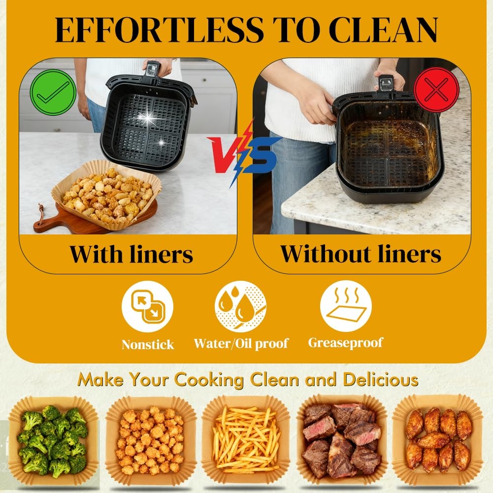 BYKITCHEN Small Air Fryer Disposable Paper 8inch (2 to 5 QT)-100pcs-square Description Features: KEEP YOUR AIR FRYER CLEAN: These small disposable air fryer paper liners feature a bowl shape to prevent any residues or grease from bleeding onto the bottom of your air fryer, keeping the sides and bottom of the air fryer spotless. Basically, there's no cleanup after baking PERFECT FOR MINI AIR FRYER & Other 2-5 QT AIRFRYER: With a 6.5-inch inner diameter and 8-inch outer diameter, and a height of 1.7 inches, these small air fryer disposable paper liners are compatible with CHEFMAN 2 QT mini air fryer/4 QT airfryer, Instant Pot Vortex 2QT mini air fryer, COSORI 2.1 QT mini air fryer, Dash 2.6qt small air fryer, Instant Pot Votex plus 4 QT & other 2-5 quart air fryers PREMIUM FOOD GRADE MATERIAL: Made from 100% food-grade pulp with a food-grade nonstick coating, unbleached, nonstick, grease-proof, waterproof, and non-absorbent, these mini air fryer parchment paper liners are 100% safe for daily use WIDE USES: These small air fryer liners are heat-safe up to 450 degrees F (232℃) and can be used in an air fryer, microwave, oven, or steam pot. They are perfect for baking or cooking various foods, such as chips, chicken, cakes, seafood, steak, and more, great air fryer kitchen accessories WARM TIPS: Please place enough food onto the air fryer paper and weigh down all four corners with the food to prevent them from flying away or getting burned by the heating element Product Details: Handling We will ship all orders within 1 business day of payment. Delivery We Do Not Ship Outside of the Continental US. Return Policy All items qualify for returns within 30 days of receipt. Buyer is responsible for return shipping on any item that is not damaged. Feedback We take our reputation seriously, we buy and sell online, so we understand the value of trust. If you are unsatisfied with your order, please contact us and we will work with you to resolve it to your satisfaction.