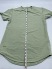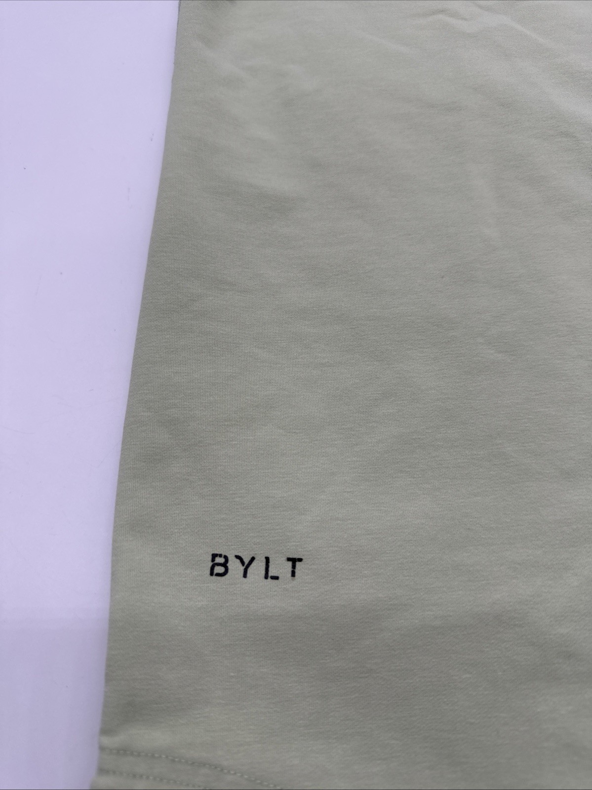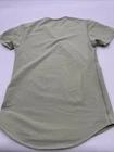 The BYLT Drop Cut T-Shirt in Men's Small is a solid green short sleeve shirt made from a blend of polyester, spandex, and cotton. This classic crew neck tee features an easy-care design and a regular fit, making it comfortable for everyday wear. The shirt is designed for men and is ideal for those looking for a stylish and easy-to-maintain wardrobe staple. *Check the images of above for the flaws measurements of the item.