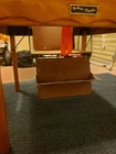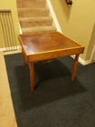 Vintage Babee Tenda infant table, "high chair", feeding table. Collapsible like a folding table. Built-in seat with fold out foot plate. Everything works fine. Solid wood with metal hardware. No plastic parts. I did replace the center strap with a new orange one. Originally had wheels but those are gone. Super cool multi functional table. Good for feeding, cutting hair, drawing, arts and crafts etc.