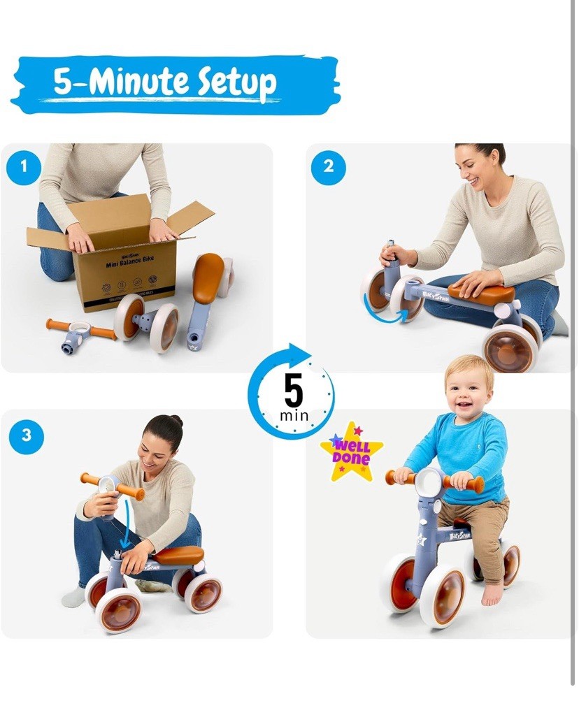 Baby Balance Bike with Adjustable Handlebars, Rear Wheel, Colorful Lighting, Best Gift for 1-2 Years