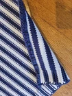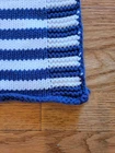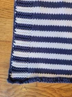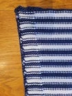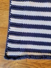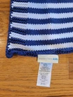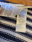 The Pottery Barn Kids Cable Knit Baby Stroller Blanket is a cozy and stylish addition to your baby's nursery bedding. This unisex crib blanket is made of soft cotton material and features charming stripes in navy and white. Measuring 35 inches in width and 30 inches in length, this knitted blanket is designed specifically to fit snugly in a stroller, providing warmth and comfort on-the-go. Pre-owned but good condition. Edges are a little rolled from use but no snags or stains.