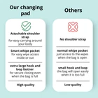PORTABLE ALL IN CHANGING PAD It doesn’t matter if you are in the park, on a road trip or just at home – the changing pad from makes diaper changing easy, clean and convenient in any location EASY TO CARRY - Use the attachable shoulder strap to carry the bag or use the side strap to attach the clutch to your wrist or clip it to your stroller. FIND SPACE FOR EVERYTHING YOU NEED - The large wipe pocket holds up to 100 at a time and has a large opening for easy access. The Diaper pocket fits a minimum of 5 diapers and the zip pocket in the front can be used to creams, baby items, your keys or cell . SAFE CLOSING AND HAND OPENING - The extra large hook and loop in the front s a save closing, even when the bag is full. You can open the bag with hand whilst holding your baby at the same time. ACCESSABLE WIPE POCKET - Sometimes you need a wipe from the bag fast. This is no porblem with the accessable inside or out wipe pocket. PADDED PILLOW AND WATERPROOF PAD - The padded pillow ensures that your babys head is comfortable while changing. The waterproof changing pad is easily san It'sed with a wipe, insuring it is hygienic and clean for the next time. PERFECT BABY SHOWER GIFT - The gender neutral changing pad is perfect for your own baby registry must have list or as a baby shower gift. Change your baby’s diaper anytime and anywhere with the portable changing pad from . The Portable Diaper Changing pad is protected with a 30 DAY MONEY BACK so you can make sure you get the best portable changing pad around. ADD TO YOUR CART TODAY CONVENIENT PORTABLE DESIGN - The compact and lightweight design of the travel changing pad makes it easier to carry and change nappies at any time. For convenience, the mat includes a long, adjustable shoulder, wrist or stroller strap and a built-in carrying handle. COMFORT AT ITS FINEST - We made the baby changing pad liner to give your baby the topmost comfort during changing times. The portable changing station has a built-in pillow to support your baby's head and an insulated padded surface to wriggle on. MULTI-FUNCTIONAL BABY ESSENTIALS ORGANIZER - This portable diaper changing pad gives ample storage pockets to hold an entire 100 pack of , a minimum of 5 diapers, and the zipped pocket hold creams and other essentials to keep your things organized. SMART POCKET - These newly designed pockets are on point with their purpose. Whether the portable changing pad for the baby is open or folded, the pocket grants you easy access that you'll never be bothered looking for your again! PRACTICAL BABY SHOWER GIFT - This portable diaper changing pad is perfect as a gift. Ideal not only for home usage but also for short or long travels, and camping to keep your little fresh and dry no matter the place. The adorable design, extra space, and soft padding make this a must-have for parents! SLEEK AND TRENDY STYLE - Its rapid-open buckle and shoulder strap allow you to carry the travel changing pad around or wear it on your wrist like a purse. Its stylish aspect is perfect for mommas out there! It can be attached to your stroller or headrest while you keep your hands holding your little munchkin! THE IDEAL HYGIENE - Your hygiene is our priority. The outside fabric and the unique folded features of the portable diaper changing pad keep your mat dry and stain-free, protecting it from unwanted surface dirt during travel. Its waterproof attribute makes it easy to clean. SAFE CLOSING AND HAND OPENING - The extra large hook and loop in the front guarantees a save closing, even when the bag is full. You can open the bag with hand whilst holding your baby at the same time.