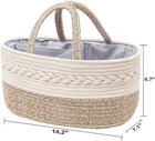 【KEEP YOUR BABY STUFFING IN ORDER】: This baby diaper caddy is 14.2x8.7x7.1 inch large; It have 3 removable dividers, self-adhesive on the sides. Cream/Beige color would suit any style and scheme of room. Perfect to fit all the essentials you need in everyday care: Like nappies,nappy changing mat, clothes, toys, lotions, creams, wipes, bottles, bibs and breast pumps. 【DURABLE MATERIAL】: Our Diaper Caddy is made of 100% cotton material quite thick and sturdy. Rope handmade carefully, skin-friendly woven fabric design and lined with blue pin stripe fabric, which are safe choice for baby. 【Multi functional organizer basket】: Well crafted and widely used, it can be used to separate all small items with convenient dividers. The perfect size can sit neatly on the bedside table, and once you finish using the diaper table, it is definitely recommended as a beautiful storage place for small toys. Multi household storage baskets, diaper bags, picnic baskets, makeup baskets, etc. are placed in a cute portable basket that you can carry with you. 【PERFECT BABY SHOWER GIFT HAMPER BASKET】: The Caddy unisex color and pattern is gender neutral making it perfect idea for a new baby boys girls. If you're looking to make up a gift for a baby shower ,this would make a very thoughtful hamper - into which could be placed useful baby products along with a toy like a small bear. 【Excellent customer service】: Focus on your satisfaction and baby’s needs, confidently order our diaper basket, and we will assist you whenever you need it. Product Description KEEP YOUR BABY STUFFING IN ORDER Multi-functional organizer nursery basket Rope handmade carefully, skin-friendly woven fabric design and lined with blue pin stripe fabric. Well made, attractive and very versatile; Perfect size to sit neatly on your bedside table which use this for nighttime stuff; Definitely recommend it as nice little toy storage too once you are finished with the nappy stage. All kept together in a lovely Portable basket that you can take with you on the go. YEONHWA Baby Diaper Caddy Organizer Woven Rope Cotton Nursery Storage Basket 14.2x8.7x7.1 inch large; It have 3 removable dividers, self-adhesive on the sides. Cream/Beige color would suit any style and scheme of room. Perfect to fit all the essentials you need in everyday care nappies, changing mat, clothes, toys, lotions, creams, wipes, bottles, bibs and breast pumps. Baby Must Haves Essentials: Multi household storage basket, diaper bag, picnic basket, makeup basket etc.. What You Gets? 1Pcs Rope Baby Diaper Caddy Organizer; Retail Package. YEONHWA Woven Rope Cotton Nursery Storage Basket 100% cotton material quite thick and sturdy ,which are safe choice for baby; Rope handmade carefully, skin-friendly woven fabric design; Cream/Beige color would suit any style and scheme of room. Perfect Baby Shower Gift Hamper Basket Unisex color and pattern is gender neutral; Making it perfect idea for a new baby boys girls; If you're looking to make up a gift for a baby shower ,this would make a very thoughtful hamper ; Baby Must Haves Essentials: Well made, attractive and very versatile; Fits in everything you need with handy dividers to separate all the little bits and bobs; Perfect size to sit neatly on your bedside table which use this for nighttime stuff; Definitely recommend it as nice little toy storage too once you are finished with the nappy stage. How to back the best condition? It comes folded nicely with a lovely bow around; When you open the package, please use an iron ; Setting [cotton or less than 30 ℃] back to the best shape! Diaper storage basket Perfect Baby Shower Gift Hamper Basket Baby Must Haves Essentials: How to back the best condition?
