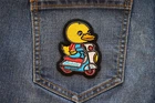 2.38x3 inch. Embroidered Patch with Plastic Iron on Backing. Patch can be sewn on to Leather Vests, Jackets or Chaps. Patch can also be ironed on to Denim Shirts, Hats or Bags. Iron on Patch at 280 Degrees Fahrenheit for 30 Seconds. Ironing on Application is a semi permanent way of attaching patches. Sew on the Patch for Permanent application. Do not iron on patches to Leather or Nylon Materials.
