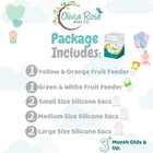 Baby Fruit Feeder Pacifier (2 Pack), Fresh Food Feeding Teether for Toddler, BPA Free, Soothing Gum Relief, Infant Silicone Teething Toy, Includes All The Sizes of The Silicone Nipple Pouches SAFETY FEATURES- The baby fruit feeder pacifier is made from 100% food grade silicone which is BPA free, Latex free, Lead free, and Phthalates free. EASY TO CLEAN- To sterilize pacifier put the silicone sacs in boiling water for 3-5 minutes. Wash with warm water and soap after every use. MULTIPURPOSE- Can be used as food feeder and a teething toy. A wide variety of food can go in the feeder from fresh to frozen fruits, vegetables and breastmilk. Medicine can also be put in. Helps with your little ones aching gums. DESIGN- A great way to introduce food to your little ones. Easy handle for a baby to grasp. Includes a 2 pack of pacifiers and 6 silicone pouches. 100% MONEY BACK GUARANTEED- We want to provide the best service possible. Your Satisfaction is the upmost importance to us. A great and safe fruit feeder pacifier for your babies. We are determined to bringing you the best products for your infants. The feeding pacifiers can be filled with banana, strawberries, peach and more. A soft organic reusable pacifier for all stages. Life saver when teaching your little ones to eat for the first time. A mom must have essentials set that she will love . Comes with a cover for a plastic chew pouch and a baby friendly handle that can be used for months. A happy and healthy way for babies learning how to chew food. Great developmental step equipment to help your little ones prosper. Made with parents safety in mind. A great baby shower gift for boy or girl. Can be used as popsicle molds by placing them items in the sac. Nipple Sizes Included: Small Nipples for 3 to 6 Month Old Medium Nipples for 6 to 12 month Olds Large Nipples for 12 month Olds or 1 year and above. Package Includes: 2 Fruit Feeders Colors Green and Yellow 2 Small Nipples 2 Medium Nipples 2 Large Nipples. Ebook Includes valuable information on how to use, cut fruits, vegetables, meats and other food into chopped sliced pieces your baby will enjoy. How to Use Your Fruit Feeder: Open the silicone pouch Place the cut food into the silicone pouch, or put breastmilk and freeze. Fasten & lock handle When finished pour out the food residue after use. For cleaning and sterilizing place the silicone pouches in boiling water for 3 to 5 minutes. Wash with soap and warm water. Clean before and after every use, this fruit feeder is dishwasher safe.Great for fresh foods & easy to clean silicone sacs that give great nutritious juice flow to your little one.Warning: Caution always use under parental supervision. SHIPPING Domestic Buyers - We have confidence in our products, but if you are not fully satisfied please contact us within 30 days of purchase and you will get full refund. - We ship within 3 business days of payment, usually sooner - We offer FREE shipping on all orders! - We only ship to the lower 48 states, no APO/FPO addresses or PO Boxes allowed International buyers – please note: Import duties, taxes, and charges aren't included in the item price or postage cost. These charges are the buyer's responsibility. - Please check with your country's customs office to determine what these additional costs will be prior to bidding or buying. * Order Cancellation Policy ** You can return a product for up to 30 days from the date you purchased it. 1. The seller reserves the right to cancel the special case only due to eBay cancellation fee. 2. The decision of seller is the final. 3. The seller will respond to the cancellation request within 2 business days. Please wait for the result of cancellation. 4. In case the cancellation is not completed by some reasons, the buyer can follow the options below to get the refund. 4.1 The buyer can reject the item when it arrives. 4.2 The buyer can send the item back to the seller within 30 days If the buyer receives item (USA Shipment ONLY). The seller will provide the FREE return label to the buyer when the buyer opens " Return Item" case on eBay by using the reason as "Change my mind" ONLY. 5. When buyer has placed the order. The order will be processed and completed by automatic warehouse system within 5 minutes. In case that buyer sends the cancellation request after 5 minutes of placing the order, the request will be rejected. **Sending direct message to cancel the order is not allowed for every case.* Return Policy For the return case - If buyer would like to return the items for refund or replacement, please CONTACT SELLER to receive the free return label from seller. The refund or replacement will be processed with the tracking number of return label which is provided by seller only. The other ways of return which are not approved by seller will not be processed for the refund or replacement.