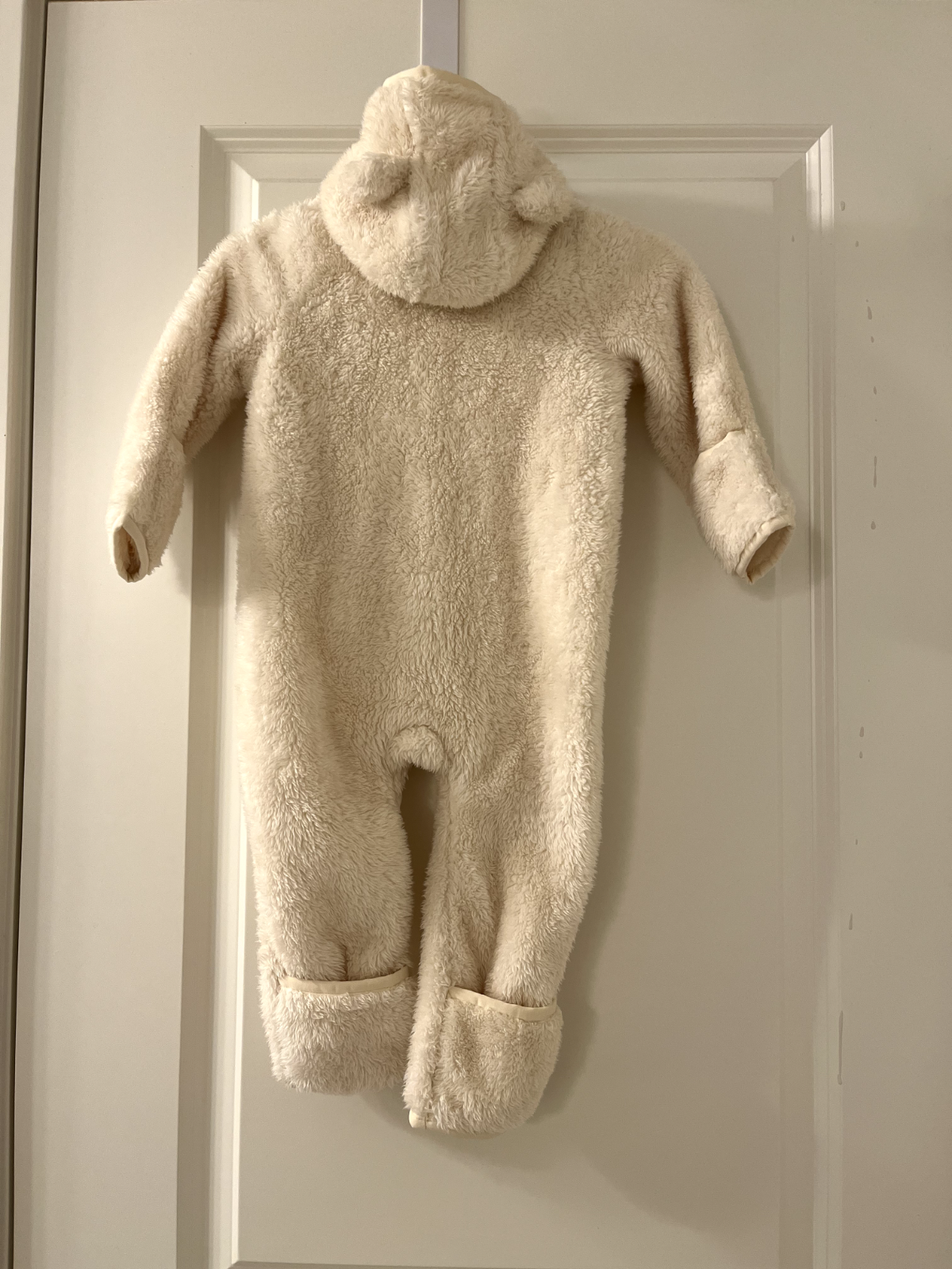 Baby GAP Snowsuit 6-12M Winter Bunting Pram Suit Coat Fleece Faux Fur IVORY Never worn without tag, in perfect condition.