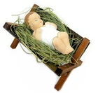 Bring joy, peace and love to your home for the holidays with this beautiful handmade baby Jesus laying on natural hay in wooden crib. Made of gypsum and beautifully hand painted. The perfect Baby Jesus for any nativity scene! Complete your Christmas nativity scene set with this adorable figurine - can be removed from manger. Hand crafted Christmas decoration for nativity scenes and other Christmas related projects Handmade in Poland gowned infant Jesus in manger laying on natural hay Provides festive charm and brings joy to your home this holiday season Great addition for your nativity scene during holidays or for a church display