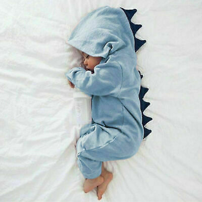 Baby Kids Newborn Hooded Jumpsuit Dinosaur Cute Bodysuit Romper Boy Girl Clothes