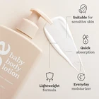 LIGHTWEIGHT HYDRATION: Our Everyday Moisturizer features a lightweight formula that provides optimal hydration for your baby's delicate skin, ensuring a gentle and refreshing feel. QUICK ABSORPTION: Experience the convenience of quick absorption with our Baby Body Lotion. Effortlessly apply and enjoy instant softness, making it perfect for busy moments like diaper changes and quick skincare routines. FRAGRANCE-FREE: Prioritize your baby's comfort with our fragrance-free formula. Say goodbye to overpowering scents and embrace the natural purity of our Baby Body Lotion, perfect for sensitive noses and skin. GENTLE FOR SENSITIVE SKIN: Formulated with care, our Everyday Moisturizer is suitable for sensitive skin. Provide your baby with the nourishment they need without worry, as our lotion is designed to be gentle and soothing for even the most delicate skin. GLUTEN & NUT FREE: Ensure a worry-free skincare routine with our Baby Body Lotion. It's not only gluten-free but also nut-free, offering peace of mind and safety for your little one's skin. Product description