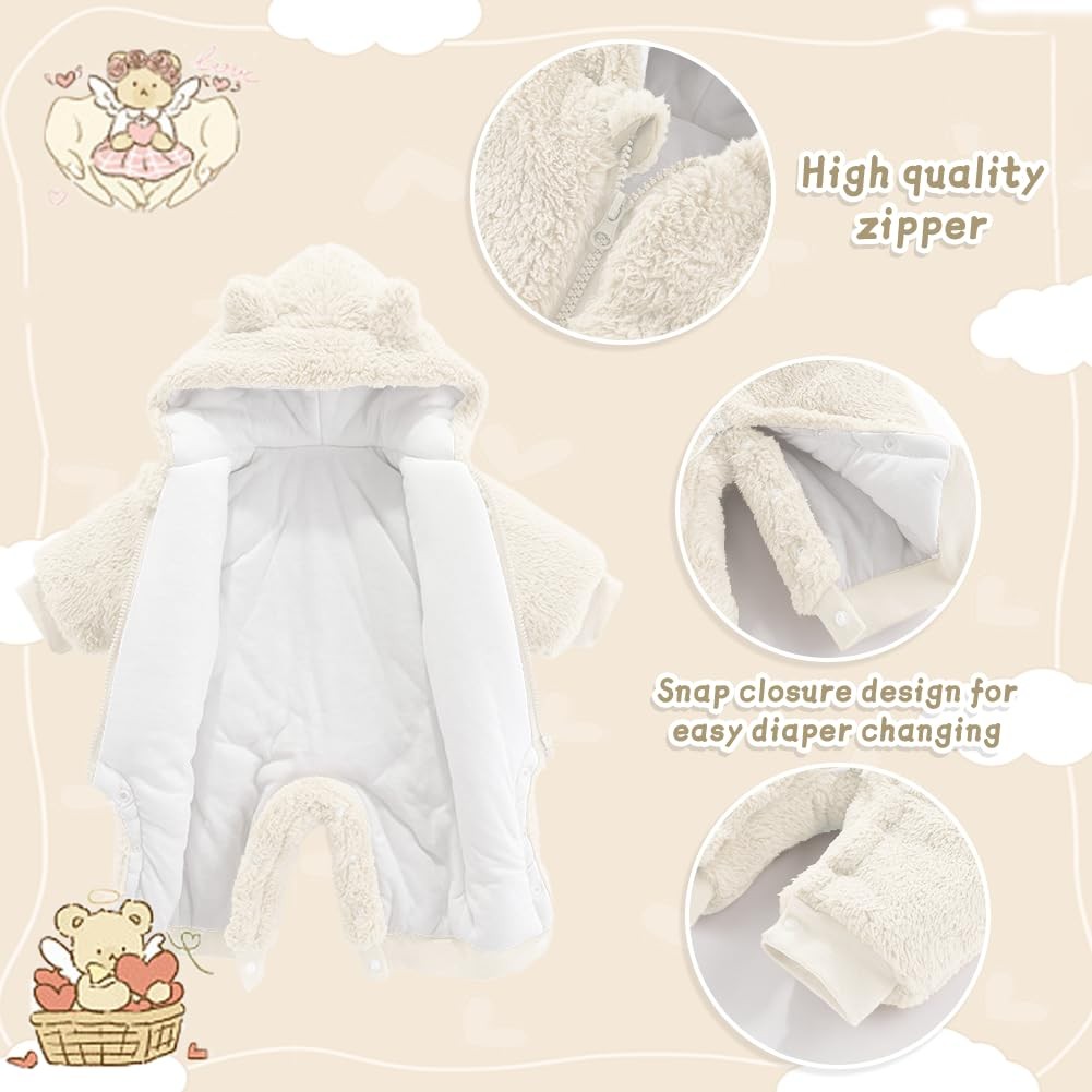 Baby Newborn Bear Outfit Fleece Snowsuit Winter Clothes Hooded Jumpsuit Rompe...