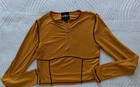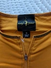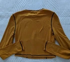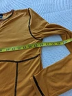 This Baby Phat windbreaker jacket is a must-have for any fashion-forward woman. The vibrant orange color and sleek design make it the perfect addition to any outfit, whether you're dressing up for a party or keeping it casual for a day out. The jacket is made of high-quality polyester and is machine washable for easy care. It's a regular fit and is available in size M. The jacket is perfect for any season, whether it's winter, summer, fall, or spring. The accents of the zipper and logo add a touch of designer and hip hop to the jacket. Measurements in photos Read: pull missing from zipper, but zipper works.