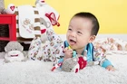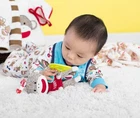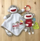 Baby Starters Sock Monkey Crinkle, Rattle, Squeak Plush with Teether and Travel Hook, 9 inch