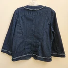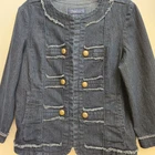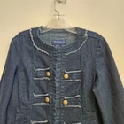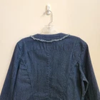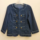 Baccini Dark Wash Military Denim 3/4 Sleeve Jean Jacket Medium Womens Buttons - Pre-Owned in Very Good Condition - Measurement – Approximate Shoulder to Shoulder - 14 in Chest Armpit to Armpit - 19 in Length – 21 in - Blue Denim Jean Jacket 3/4 Sleeve Hook & Eye Closure. 79% Cotton 20% Polyester 1% Spandex - Spring, Summer, Fall, Winter, Work, Night Out, College, School, Everyday, Day Out, Chic, Stylish, Trendy, Casual and Simple - Returns acceptable within 30 days of purchase unworn, in original condition - Check out my E-bay Store. Lots of Choices Available. Reduced shipping for 2 or more items. Let me know before you pay so I can send you an invoice to discount the shipping