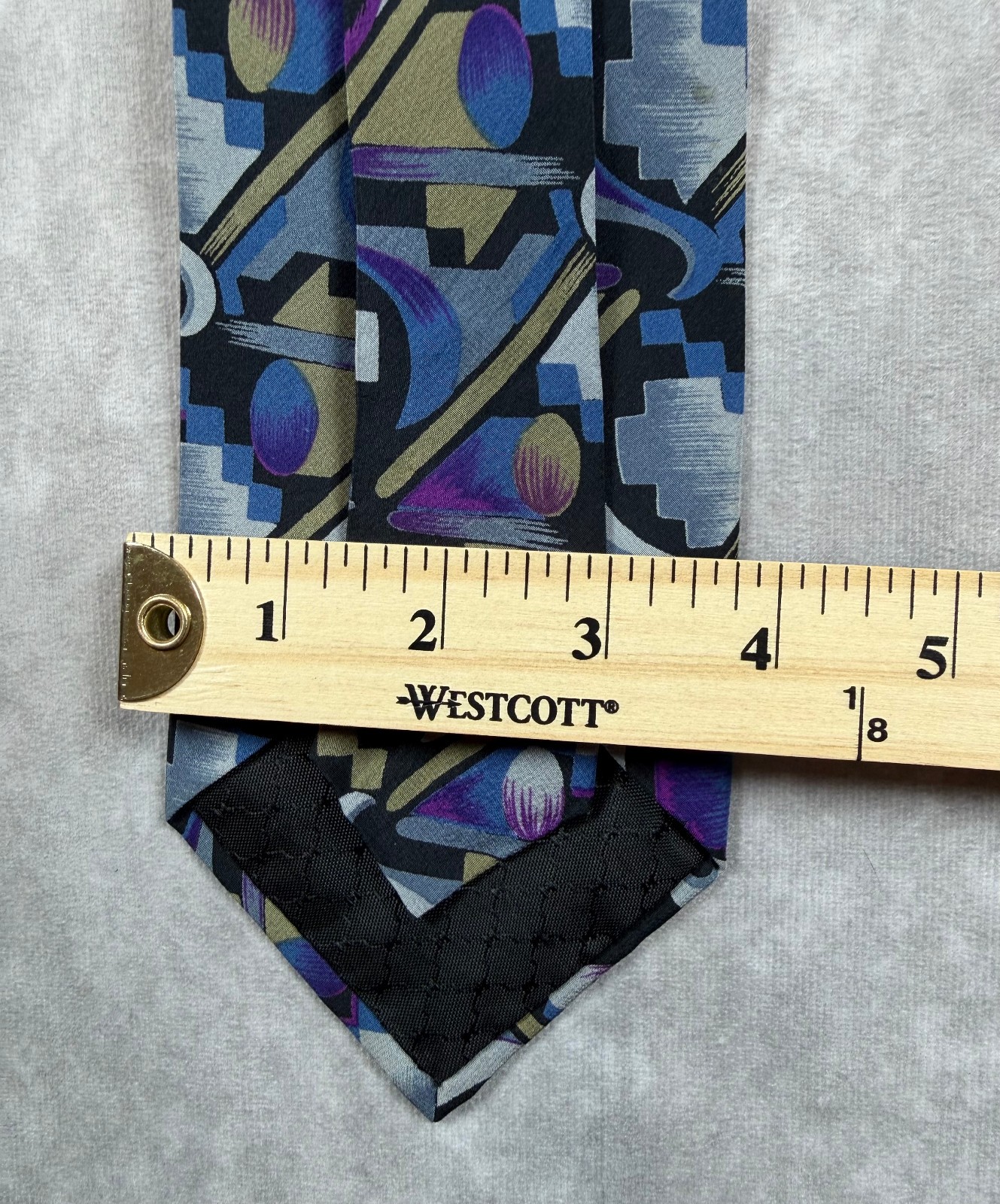 Bachrach 100% Silk Tie Purple Blue Gray Geometric Wide 57” Made Canada
