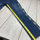Get ready to ride the range in style with these Back In The Saddle women's jeans. The dark wash denim fabric is accented with a beautiful argyle/diamond pattern, embroidered details, and a high-rise fit. The jeans feature a 5-pocket design, with a button and zipper closure, and an elastic waistband for added comfort. The relaxed fit and stretchy material make these jeans perfect for any season, whether you're out for a casual ride or hitting the town. The inseam and waist size are pictured, and the jeans are available in a size 10. With their western theme and Back In The Saddle product line, these jeans are a must-have for any fashion-forward cowgirl.