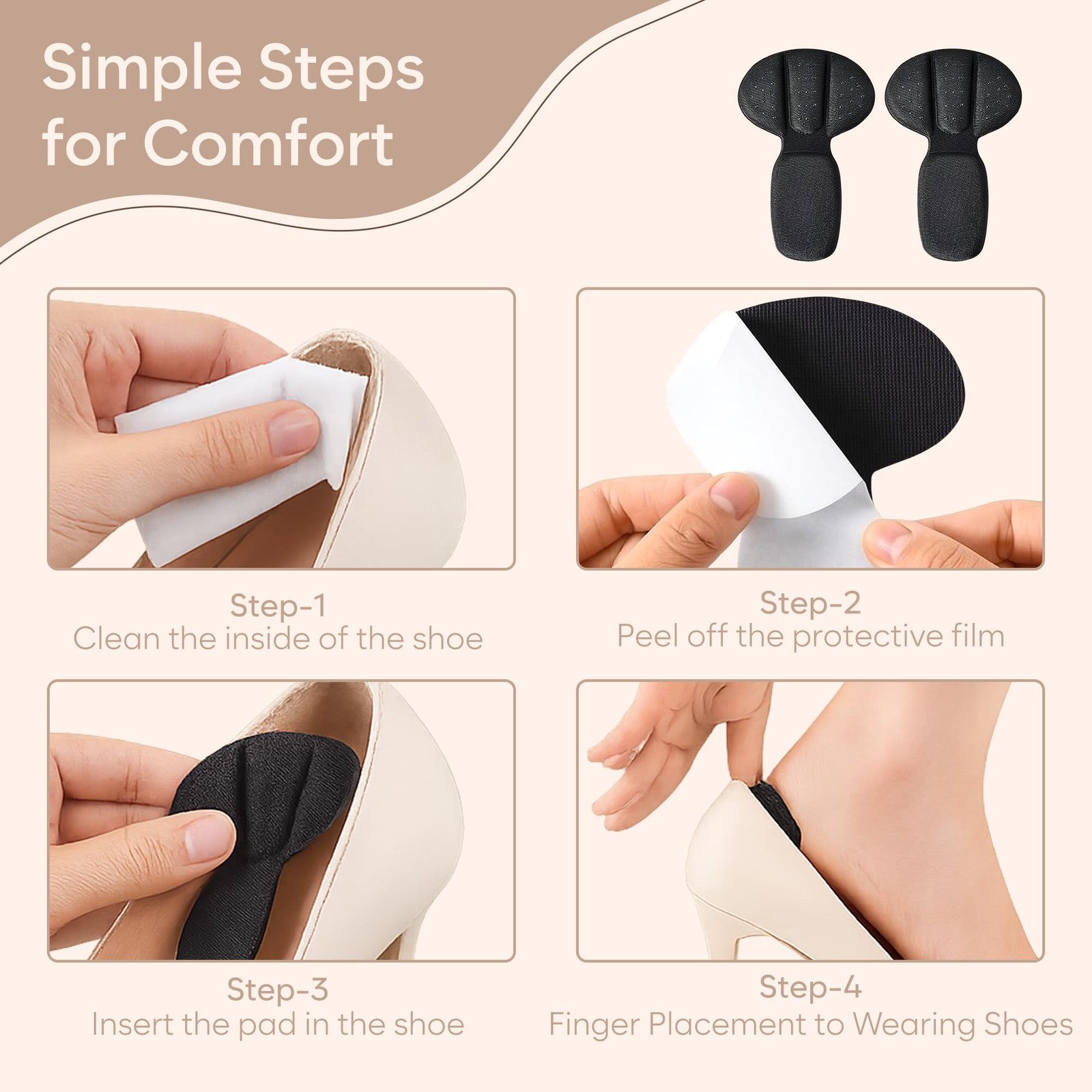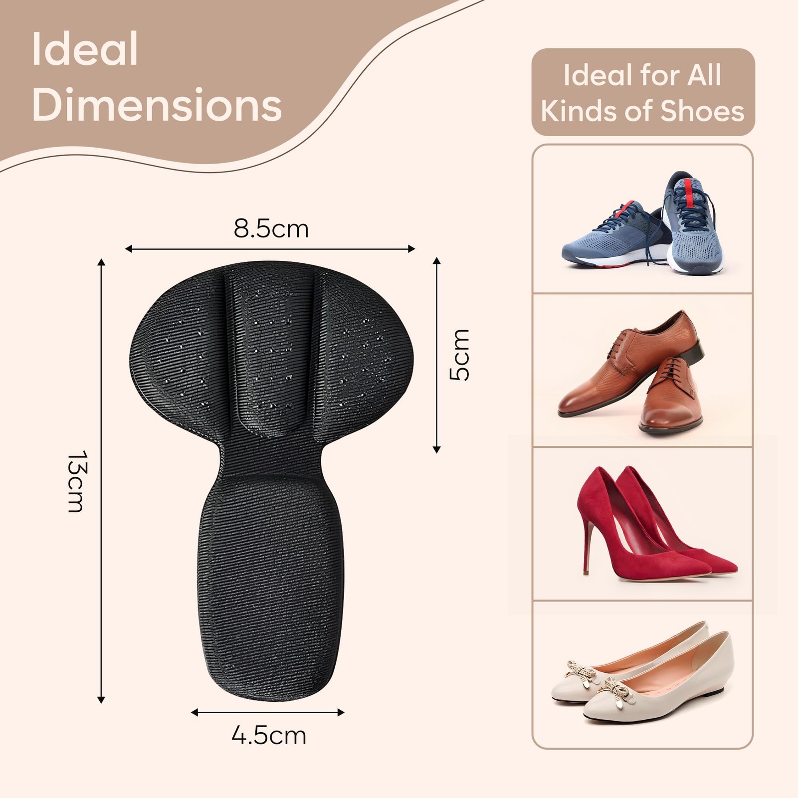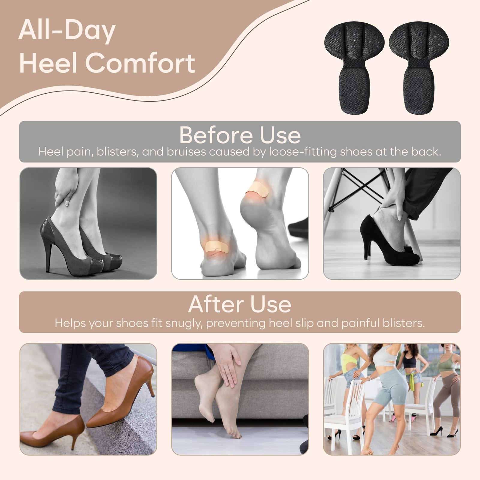 Back of Heel Cushion Pads, 4Pcs Mesh Adhesive Grips 2 Pairs, Black Product Details 【Soft & Comfortable】Our heel liners are made of high quality microfiber leather and sponge, breathable, skin-friendly, and with great cushionin, mesh outer is comfortable for your feet, which is good for keeping them in place firmly when dancing, shopping, running, walking, travel, etc. 【Heel Pain Relief】Heel grips can help you solve many problems in your daily life, favorable to reducing the friction between shoes and feet to avoid foot pain and blisters after long walking, such as Prevent shoes rubbing your feet, slipping out of shoes, reducing pressure and friction etc. 【Easy to Use】These shoe heel inserts have self-adhesive backs, Peeling off the back cover when use, you can stick them on your shoes' backs conveniently, the adhesive is extremely strong, so you don’t have to worry about them falling off, and you don't even feel that they are there. 【Widely Application】These heel pad are available for both men and women, fit most types of shoes, such as high-heels, leather shoes, casual shoes, flats and more. Heel cushion pads are also suitable for new shoes and slightly bigger shoes. But please note the shoe heel inserts are not suitable for shoes that have a lot of fluff on the shoe's inner suede. 【Package Include】You will get 4 pcs black heel protectors for shoes, and strong self-adhesive backing is made from advanced double-sided tape to prevent slipping, enough quantity for your use, and you can even share it with family and friends.