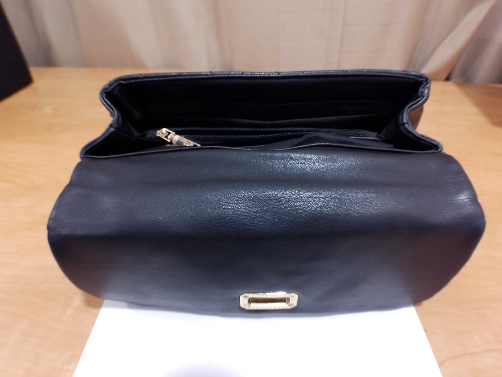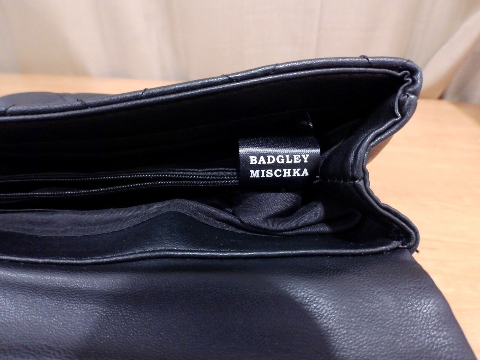 Elevate your accessory collection with the Badgley Mischka Crossbody Handbag, a quintessential piece for those who appreciate a blend of elegance and practicality. Crafted from high-quality leather in a classic black, this small-sized bag features a sophisticated ar a quilted finish that adds a touch of texture and luxury. Metallic chain straps provide a striking contrast, making this handbag a versatile companion for both day-to-day use and special occasions. Its secure turn-lock closure ensures your belongings are safe while on the go. Inside, you'll find a black lining that complements the exterior, ensuring your essentials are nestled in style.