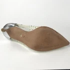 Hollywood glamour.!! Women's size 7 1/2 heels designed by Badgley Mischka, an American fashion label founded in 1988 by Mark Badgley and James Mischka. The brand is known for designs influenced by 1940s Hollywood glamour, with simple and streamlined aesthetics. These heels showcase a pointed-toe silhouette, transparent vamps, and embellishments of rhinestones, evoking a glamorous and elegant style suitable for evening wear or special occasions. Preowned so wear on both back heels and bottoms as shown in pictures.
