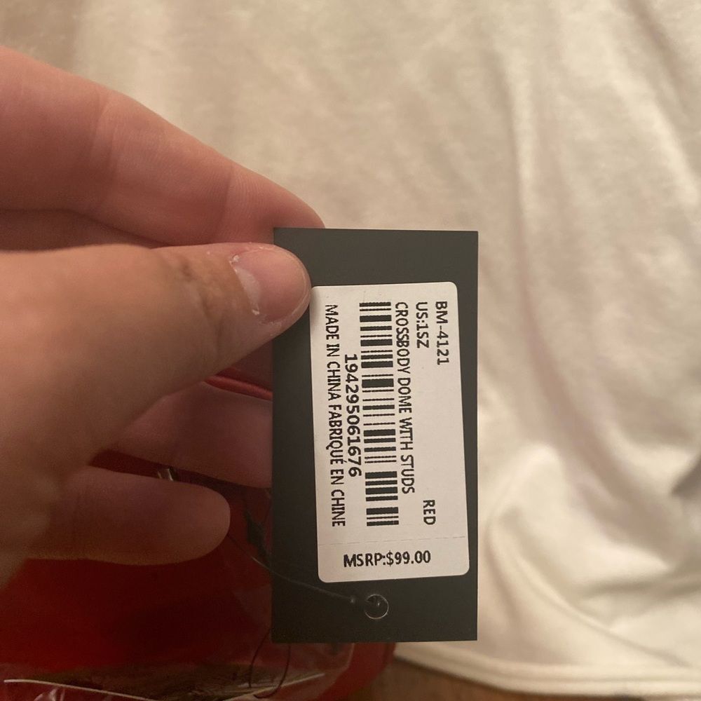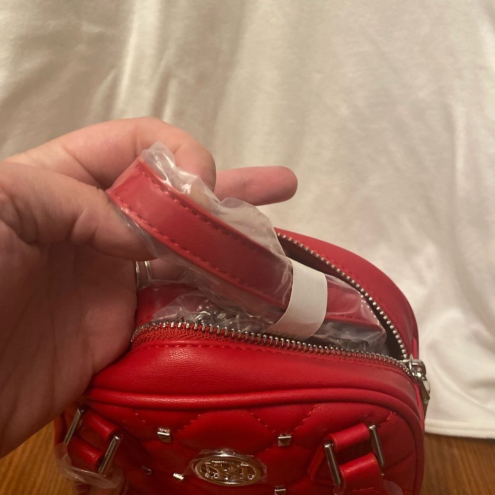 This is a brand new gorgeous crossbody bag by Badgley Mischka! It's got beautiful silver studs in the red quilted Vegan Leather that pop and give it that edge you need! This is a great addition to any date night outfit or just to cruise the town on a quiet Sunday morning! She is a beaut and don't miss out on this deal!!!
