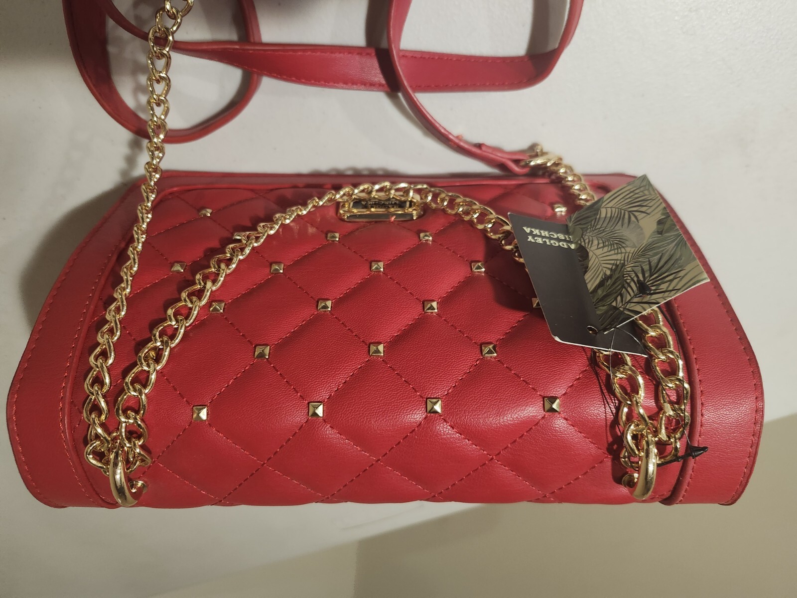 $ 13.44Luce Black Leather Satchel with Gold-Toned Hardware Double Strap & Rhinestone Accents