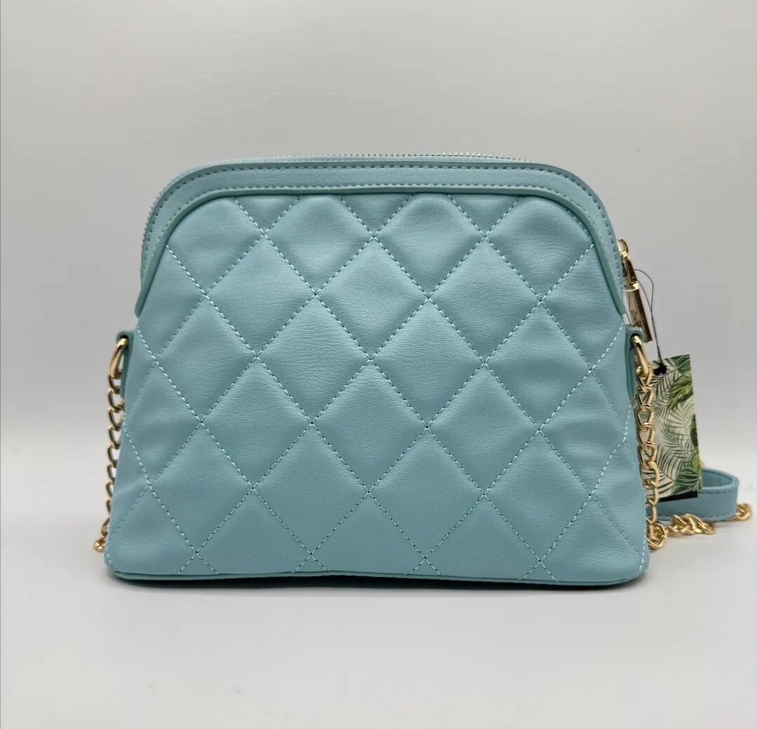 New with tags, Beautiful Blue. Quilted Vegan Leather, studded Badgley Mischka Bag. It can be worn as a crossbody or shoulder bag. MRSP $130