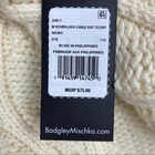 NEW Badgley Mischka Women's Ivory Hourglass Cable Knit Scarf. Dimensions: 15" wide x 60" long. Smoke free home. Brand New Condition. 50% Nylon / 40% Viscose / 5% Cashmere / 5% Wool Size: One Size #2171-1-11