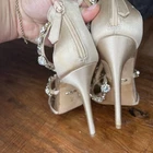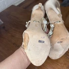 Badgley Mischka Champagne Thelma Crystal Embellished Wedding Heels Sandals Sz 7. Champagne satin with crystal detailin. Don’t have original box or dust. Please check the last picture the left shoe have a small stain near the zip !!