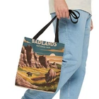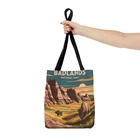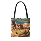 Discover the breathtaking beauty of Badlands National Park with our vibrant vertical poster. Adorned with a stunning all-over print of the park’s iconic landscapes, this artwork captures the essence of nature's artistry. Perfect for any space, it invites adventure and serenity into your home. Elevate your decor and celebrate the rugged charm of the Badlands today! Add functional perks to an already great design and you get a staple for everyday use. With its interior zippered pocket for added safety, and the adjustable straps for extra comfort, this tote bag has it all. 100% Spun Polyester Available in two sizes: 13''x13'' and 18x18'' Adjustable strap Black interior lining and inner pocket Assembled in the USA from globally sourced parts 13" × 13'' 18" × 18'' Height, in 13.00 18.00 Length, in 13.00 18.00 Width, in 3.00 3.00 Handle length, in 28.74 28.74 Handle width, in 1.00 1.00