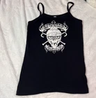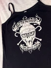 Bag Lady Sue Biker Style Skull Flames Autographed Tank Top Size Small Bag lady sue biker style skull flame tank top signed by (i presume) bag lady sue. Good preowned condition. Size small, true to size.
