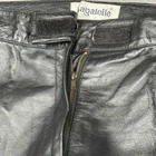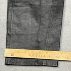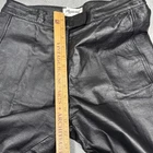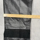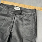 Bagatelle women’s black leather pants. Genuine leather shell with straight leg fit and moto-inspired panel detailing at knees. Zip fly with hook-and-loop waist closure. Fully lined. Soft, broken-in leather with natural creasing from wear. No holes or major flaws. See measurements for best fit. MEASUREMENTS: Waist (flat): approx 15” Rise: approx 11” Inseam: approx 32” Leg opening: approx 7.5” TAGGED SIZE: Women’s 10 MATERIAL: Shell: 100% leather Lining: 100% polyester