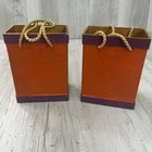 Balasi Export Handmade Pair Of Holiday Tree Textured Ceramic Bags Handmade in Southern Philippines Bottom of one has peeling paint from sticker 7.5" Tall 5.75" Wide Additional measurements available upon request All measurements are approximate All measurements are taken with item laying flat Double bust, waist, & hip for measurement all the way around Colors may differ based on others computer/phone/etc settings All pre owned items have been washed and steamed All pre owned items have been looked over for flaws and will be noted in listing