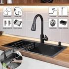 29.5" Black Kitchen Sink Deep Single Bowl 304 Stainles Steel w/ Pull-out Faucet Features Pull-out faucet, 360° cleaning without dead angle, more convenient. Strict selection of stainless steel, thick, durable, and not easily deformed. With 7 layers and 147 processes, it is resistant to dirt and oil stains. After long-term use, it will not scratch or fade, boil at high temperatures, fade, scratch, and leave no marks. Nano coating, which forms beads when falling into water without oil stains, makes cleaning more convenient. Deepen the sink, increase capacity, R10 near right angle, and increase utilization space. The sink has three holes, a kitchen faucet, a soap dispenser, and a water purifier, making it more convenient for you to install according to your habits. The bottom of the sink is coated with anti condensation coating, which prevents cold condensation and keeps the cabinet dry and clean for a long time. With a condensation coating, it effectively prevents cold condensation and keeps the cabinet dry and clean. Without condensation coating, it is easy to condense water droplets, causing mold on the inner walls of the cabinet. EVA sound-absorbing pad alleviates the impact of water flow on the bottom of the sink, reduces vibration, and achieves sound-absorbing effect. High level overflow hole to prevent water from flooding the golden mountains. Enlarge the pore size of the water heater and use multiple filtering cages to ensure fast and non clogging drainage. Scalable drainage basket, adjustable length, space reuse, and larger space. Anti odor drainage hose, anti odor and anti mosquito, resistant to high temperature and quick drainage. Specification Condition: Brand New Color: Black Material: 304 Stainless Steel Faucet Type: Pull-out Faucet Sink Type: Single Bowl Mounting: Drop-in/Top Mount/Undermount Room: Basement, Kitchen, Utility/Laundry Room Size: 29.5*17.5*8.5inch/75*45*22cm Package Includes 1 x 29.5inch Sink 1 x Pull-out Faucet 1 x Pull-out Drainer Basket 1 x Hydathode 1 x Drain Pipe 1 x Soap Dispenser 2 x Water Pipe 2 x Angle Valve Warranty 1.If your item has been damaged in transit or becomes faulty during the warranty period, please email us with pictures or video to show the problem. 2.Please check everything carefully after you receive the parcel, as any damages except DOA (Dead-On-Arrival) are not covered if it's the fault of the consumer. 3.Please submit all enquires via the “Ask a Question” tab, located at the bottom of this page. 4.If your question cannot be answered, please send us a message and we will reply within 12 hours during business days, and within 72 hours during weekends. 5.Replies will go to your registered eBay account. We are happy to resolve any issue, so please contact us before leaving feedback.