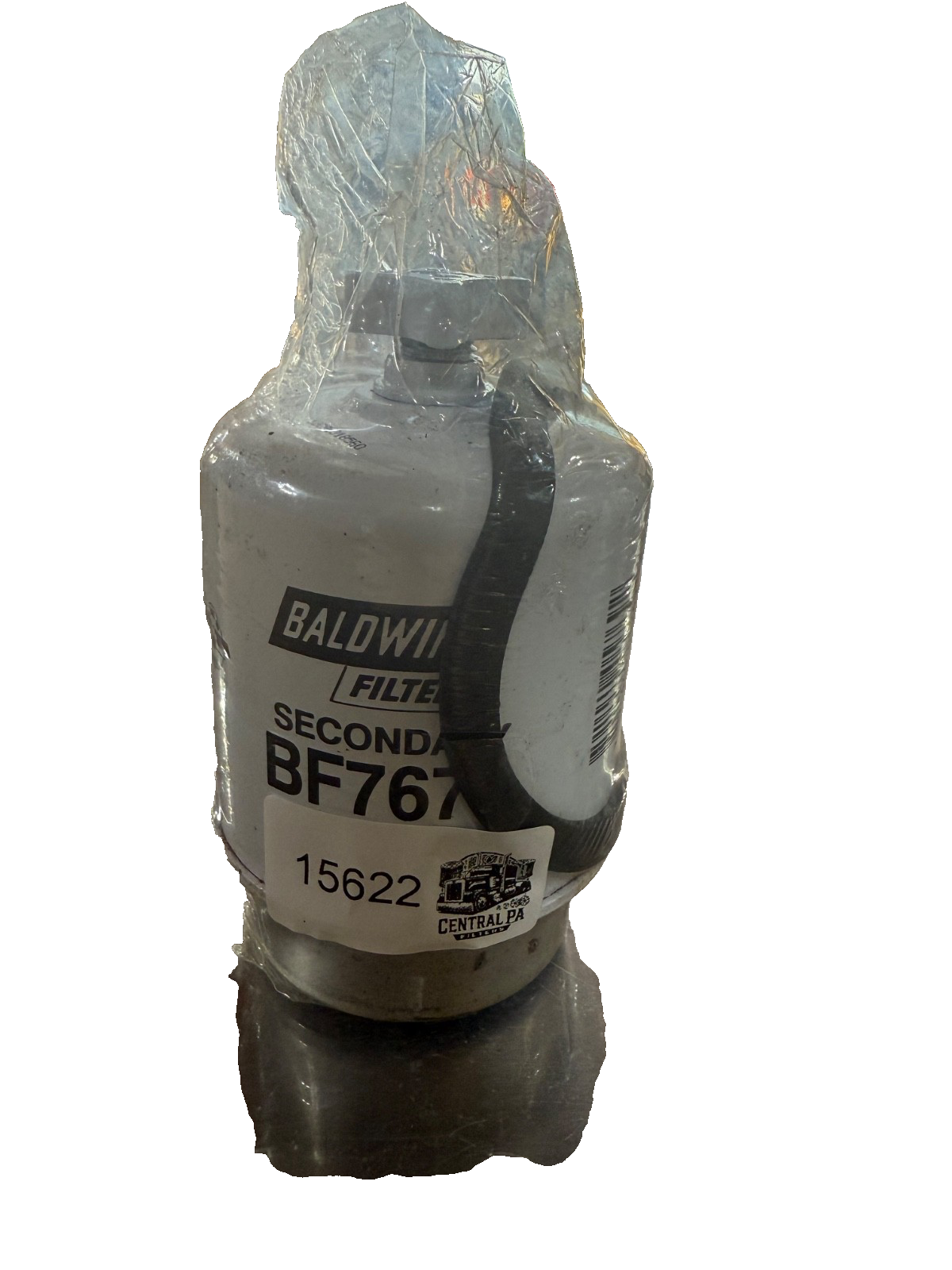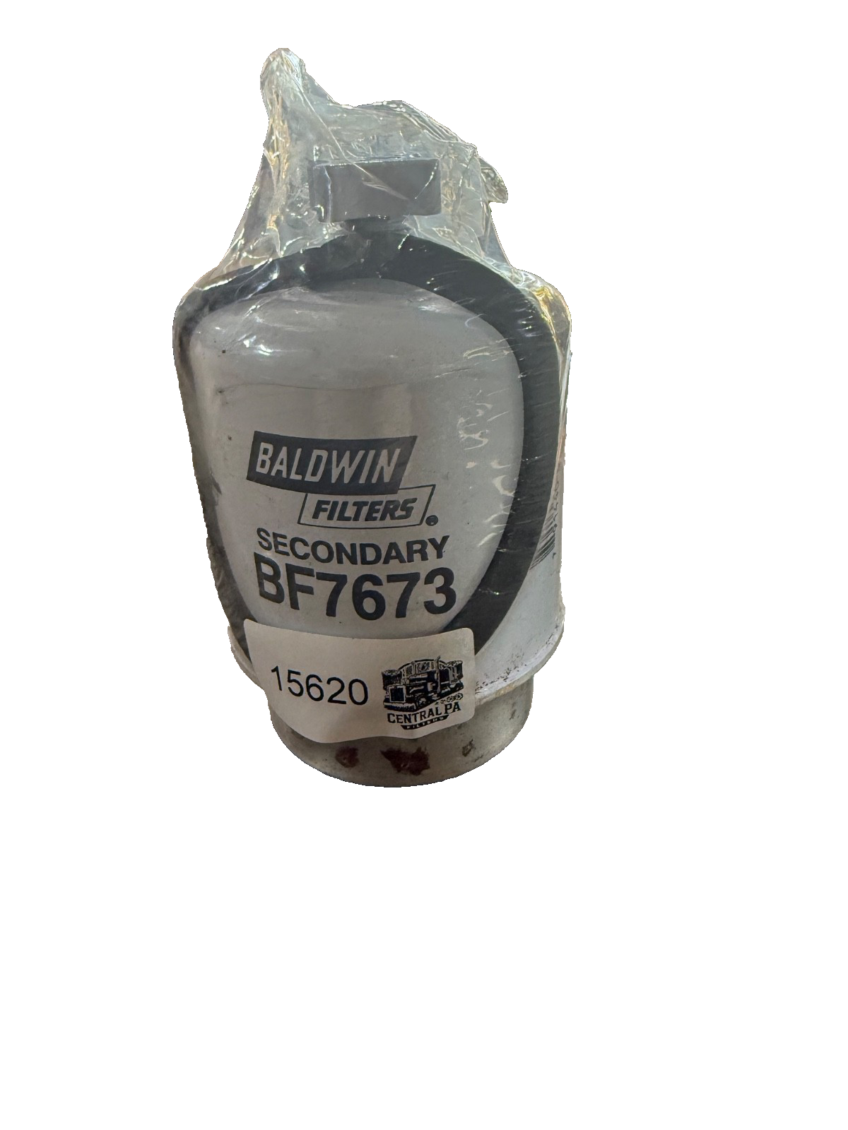 The Baldwin Fuel Filter BF7673 is a high-quality, metal filter designed for easy installation on the front of a vehicle. Made in the United States, this fuel filter features a painted finish and comes with a rubber gasket for a secure fit. The clamp-on mounting style ensures a stable connection, while the manufacturer warranty guarantees reliability. With rust spots noted as a condition, this filter still provides efficient filtration for your vehicle's fuel system.