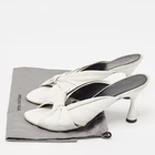 These white sandals will frame your feet in an elegant manner. Crafted from quality materials, they flaunt a classy display, comfortable insoles, and 9 cm heels.Certified by The Luxury Closet - This item has gone through a detailed authentication process overseen by our experts. We offer a lifetime guarantee of authenticity on all our items. Import duties, taxes and charges are not included in the item price. These charges are the buyers responsibility. Please check with your country’s customs office to determine what these additional cost will be prior to buying. Our eBay Store About Us Contact Us Add to Favorite Sellers Balenciaga White Leather Knot Open Toe Slide Sandals Size 40.5 $174.9 These white sandals will frame your feet in an elegant manner. Crafted from quality materials, they flaunt a classy display, comfortable insoles, and 9 cm heels. Product Details Brand Color White Dimensions Material Leather Size 40.5 Outsole Width 9 cm Outsole Length 26 cm Heel Height 9 cm Includes Original Dustbag Certified by The Luxury Closet This item has gone through a detailed authentication process overseen by our experts. We offer a lifetime guarantee of authenticity on all our items. How We Check The in-house team of experts at The Luxury Closet is highly trained to verify the authenticity and the condition of the luxury products. They ensure that only 100% authentic items are put on sale.The evaluation process is unique with its own mix of assessment criteria and differs according to the category. Each item is evaluated based on the following combination of hallmarks, hardware, stitching, symmetry, material, craftsmanship, stamping, codes, hologram stickers, and packaging. Our authenticators also check if the items have been modified or amended (e.g., aftermarket diamonds, replaced batteries, repaired bags, etc.) International Buyers Import duties, taxes and charges are not included in the item price. These charges are the buyers responsibility. Please check with your country’s customs office to determine what these additional cost will be prior to buying.