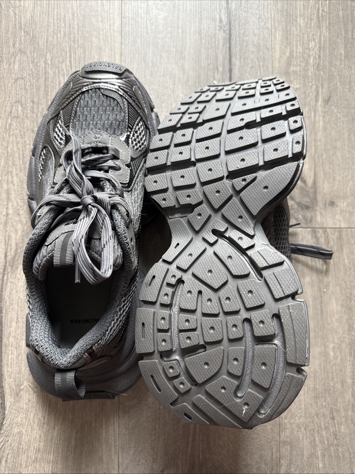 These Balenciaga men's shoes are a stylish and comfortable option for casual wear during the summer season. The gray sneakers feature a solid pattern with a lace-up closure for a secure fit. Made with leather lining and cotton upper material, these shoes offer a comfortable and breathable option for everyday wear. The size 9.5 shoes are in new condition without the original box, making them a convenient and fashionable choice for any man's wardrobe.
