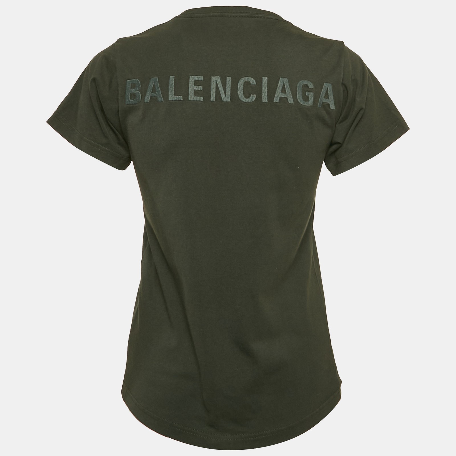Minimal and directional, this forest green jersey tee from Balenciaga features a small embroidered logo at the chest and a large version on the back. A modern uniform essential.Certified by The Luxury Closet - This item has gone through a detailed authentication process overseen by our experts. We offer a lifetime guarantee of authenticity on all our items. Import duties, taxes and charges are not included in the item price. These charges are the buyers responsibility. Please check with your country’s customs office to determine what these additional cost will be prior to buying. Our eBay Store About Us Contact Us Add to Favorite Sellers Balenciaga Green Logo Embroidered Jersey T-Shirt S $282.7 Minimal and directional, this forest green jersey tee from Balenciaga features a small embroidered logo at the chest and a large version on the back. A modern uniform essential. Product Details Brand Color Green Dimensions Material Jersey Size S Outsole Width Outsole Length Heel Height Includes Certified by The Luxury Closet This item has gone through a detailed authentication process overseen by our experts. We offer a lifetime guarantee of authenticity on all our items. How We Check The in-house team of experts at The Luxury Closet is highly trained to verify the authenticity and the condition of the luxury products. They ensure that only 100% authentic items are put on sale.The evaluation process is unique with its own mix of assessment criteria and differs according to the category. Each item is evaluated based on the following combination of hallmarks, hardware, stitching, symmetry, material, craftsmanship, stamping, codes, hologram stickers, and packaging. Our authenticators also check if the items have been modified or amended (e.g., aftermarket diamonds, replaced batteries, repaired bags, etc.) International Buyers Import duties, taxes and charges are not included in the item price. These charges are the buyers responsibility. Please check with your country’s customs office to determine what these additional cost will be prior to buying.