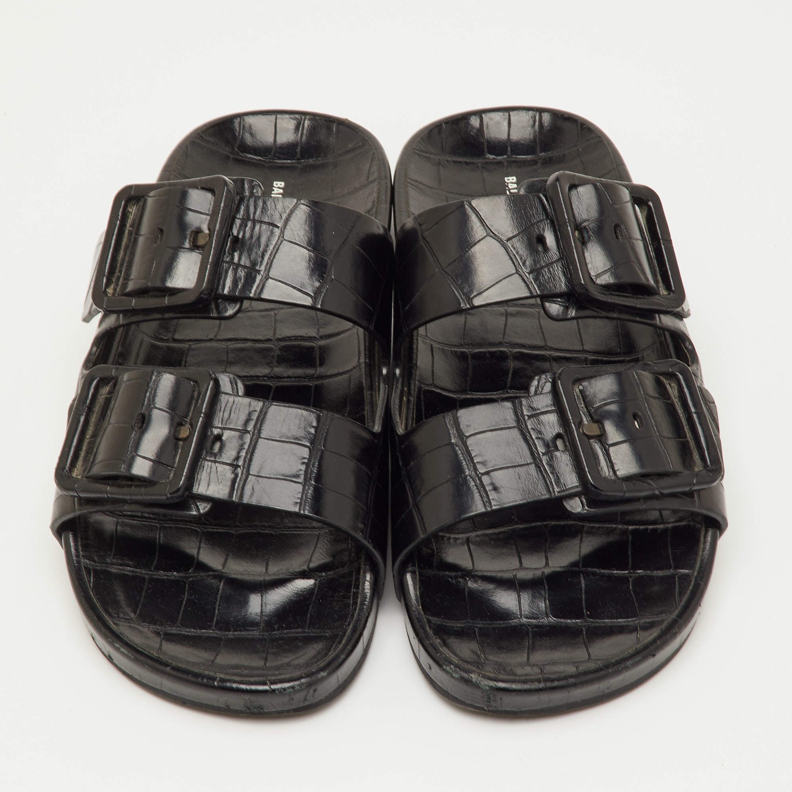 Our eBay Store About Us Contact Us Add to Favorite Sellers Balenciaga Mallorca Size 41 Black Croc Embossed Leather Banded Buckle Slide Crafted in croc-embossed black leather, these Balenciaga Mallorca slides combine sleek texture with modern design. The wide banded straps and buckle detail add structure and edge to the silhouette. Comfortable yet fashion-forward, they’re ideal for elevated everyday styling. Product Details Brand Balenciaga Color Black Includes Original Dustbag, Original Box Outsole Length 28 cm Outsole Width 10 cm Size 41 Certified by The Luxury Closet This item has gone through a detailed authentication process overseen by our experts. We offer a lifetime guarantee of authenticity on all our items. How We Check The in-house team of experts at The Luxury Closet is highly trained to verify the authenticity and the condition of the luxury products. They ensure that only 100% authentic items are put on sale.The evaluation process is unique with its own mix of assessment criteria and differs according to the category. Each item is evaluated based on the following combination of hallmarks, hardware, stitching, symmetry, material, craftsmanship, stamping, codes, hologram stickers, and packaging. Our authenticators also check if the items have been modified or amended (e.g., aftermarket diamonds, replaced batteries, repaired bags, etc.) International Buyers Import duties, taxes and charges are not included in the item price. These charges are the buyers responsibility. Please check with your country’s customs office to determine what these additional cost will be prior to buying.