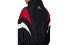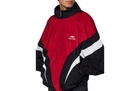 This Balenciaga Men's Oversized Tracksuit Jacket in a multicolor design features a windbreaker outer shell material, ideal for winter, summer, fall, and spring seasons. The jacket has a zip closure, elastic waist, and zipped pockets for convenience. The breathable and wind-resistant features make it suitable for various weather conditions. With a bold blue color and colorful theme, this jacket offers a stylish and functional addition to any man's wardrobe. Made by the renowned brand Balenciaga, this jacket is a high-quality and fashionable choice for those looking for a standout outerwear piece.