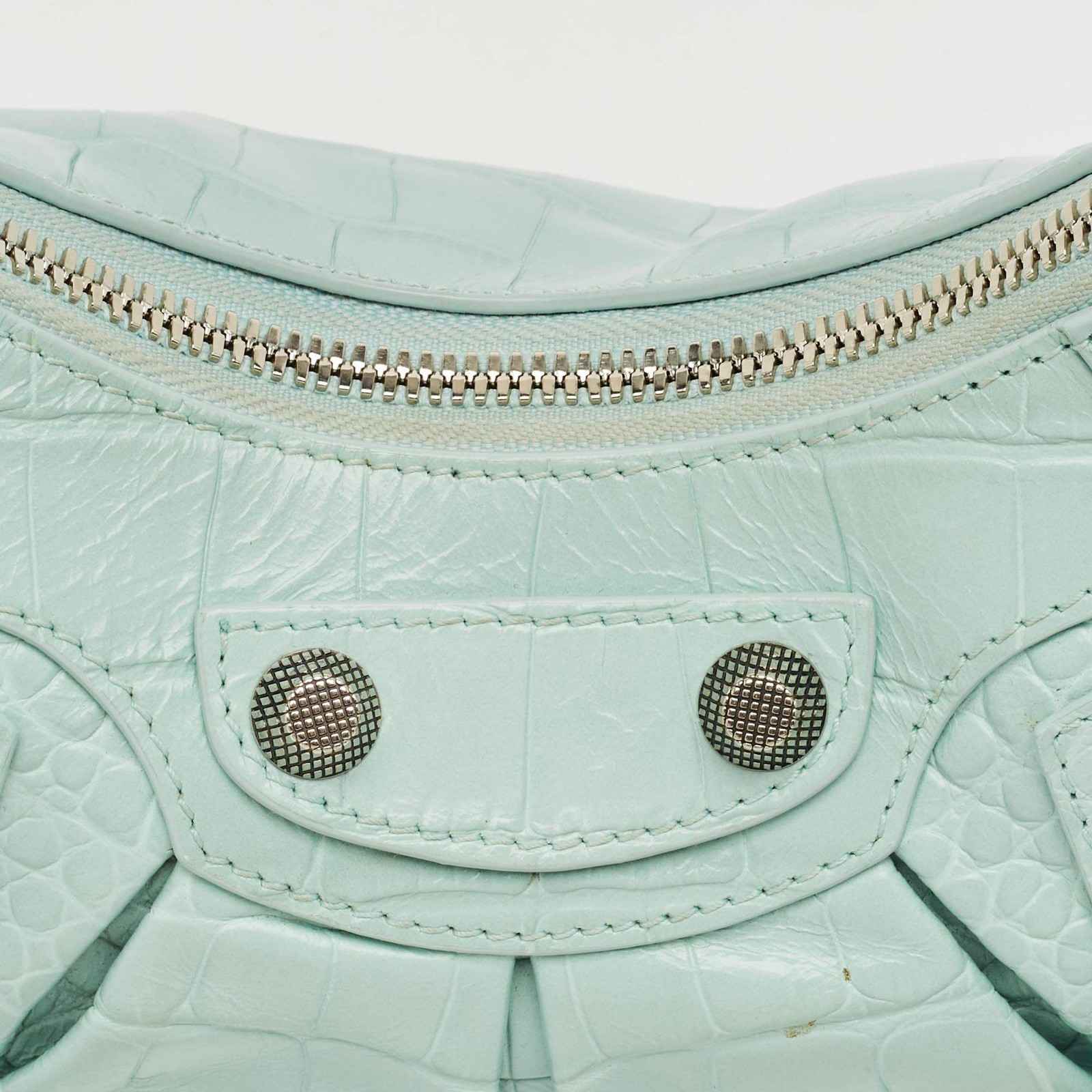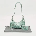 Our eBay Store About Us Contact Us Add to Favorite Sellers Balenciaga Pale Turquoise Croc Embossed Leather XS Le Cagole Shoulder Bag The Balenciaga Le Cagole XS Shoulder Bag delivers bold luxury in pale turquoise croc-embossed leather. Its curved silhouette, silver-tone hardware, and mirror charm reflect the brand’s signature avant-garde edge. Compact yet eye-catching, it makes a statement wherever you go. A modern icon that embodies Balenciaga’s fearless and fashion-forward design. Product Details Brand Balenciaga Color Blue Includes Original Dustbag, Pouch, Pocket Mirror Material Fabric Certified by The Luxury Closet This item has gone through a detailed authentication process overseen by our experts. We offer a lifetime guarantee of authenticity on all our items. How We Check The in-house team of experts at The Luxury Closet is highly trained to verify the authenticity and the condition of the luxury products. They ensure that only 100% authentic items are put on sale.The evaluation process is unique with its own mix of assessment criteria and differs according to the category. Each item is evaluated based on the following combination of hallmarks, hardware, stitching, symmetry, material, craftsmanship, stamping, codes, hologram stickers, and packaging. Our authenticators also check if the items have been modified or amended (e.g., aftermarket diamonds, replaced batteries, repaired bags, etc.) International Buyers Import duties, taxes and charges are not included in the item price. These charges are the buyers responsibility. Please check with your country’s customs office to determine what these additional cost will be prior to buying.