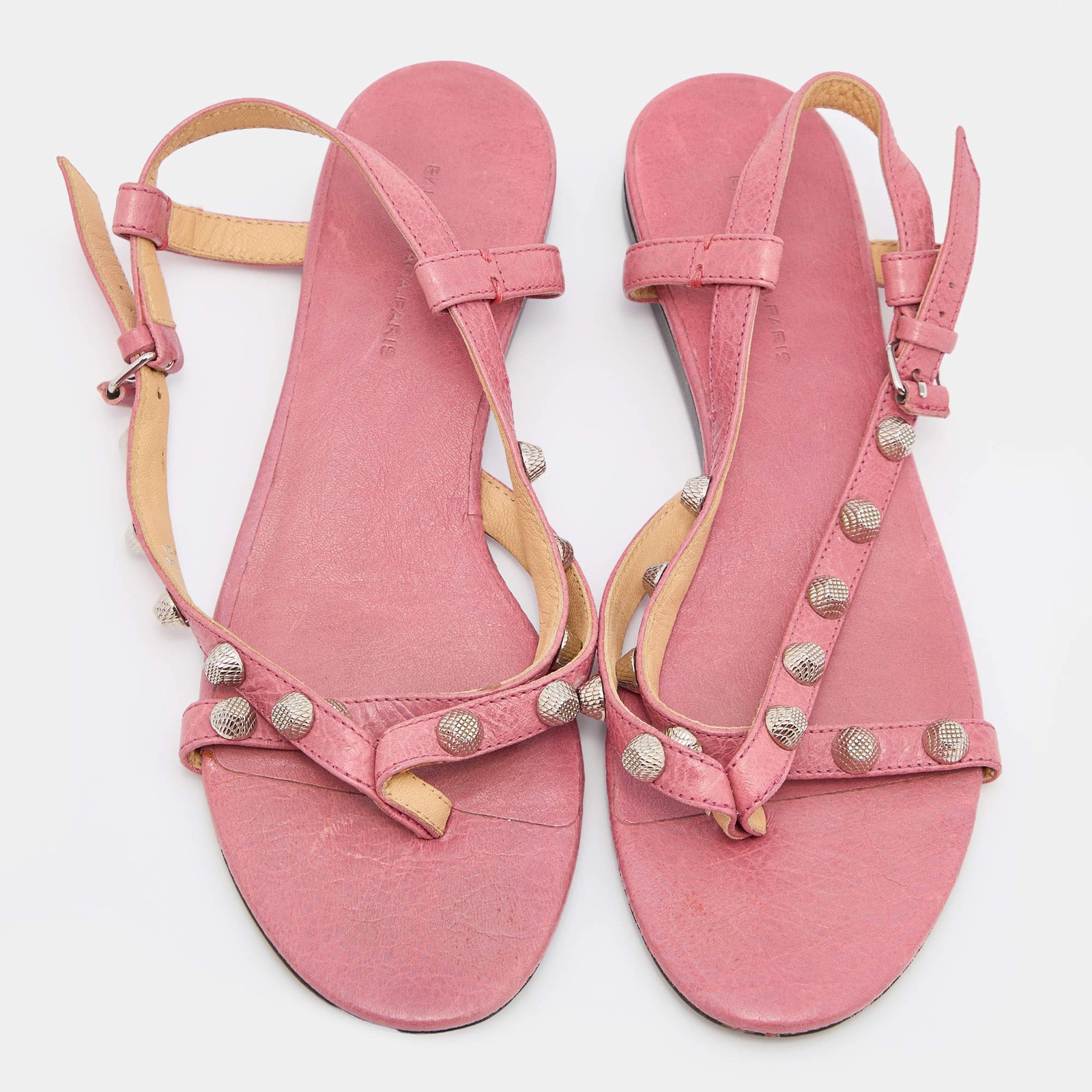 Our eBay Store About Us Contact Us Add to Favorite Sellers Balenciaga Pink Leather Arena Flat Sandals Size 36 Wear these designer sandals to spruce up any outfit. They are versatile, chic, and can be easily styled. Made using quality materials, these sandals are well-built and long-lasting. Product Details Brand Balenciaga Color Pink Includes The Luxury Closet Packaging Size 36 Outsole Length 26.5 cm Outsole Width 11 cm Certified by The Luxury Closet This item has gone through a detailed authentication process overseen by our experts. We offer a lifetime guarantee of authenticity on all our items. How We Check The in-house team of experts at The Luxury Closet is highly trained to verify the authenticity and the condition of the luxury products. They ensure that only 100% authentic items are put on sale.The evaluation process is unique with its own mix of assessment criteria and differs according to the category. Each item is evaluated based on the following combination of hallmarks, hardware, stitching, symmetry, material, craftsmanship, stamping, codes, hologram stickers, and packaging. Our authenticators also check if the items have been modified or amended (e.g., aftermarket diamonds, replaced batteries, repaired bags, etc.) International Buyers Import duties, taxes and charges are not included in the item price. These charges are the buyers responsibility. Please check with your country’s customs office to determine what these additional cost will be prior to buying.