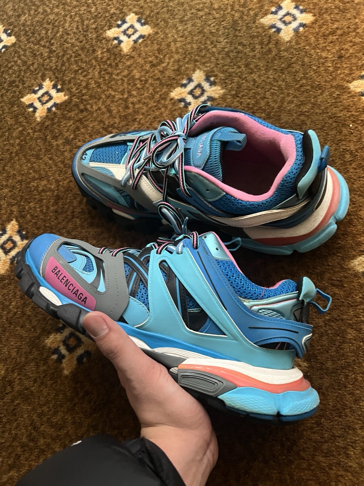 The Balenciaga Track Runner sneaker in Triple Black colorway is a stylish and modern athletic shoe designed for men. With a low top shoe shaft style, this sneaker features a sleek and versatile black on black color scheme. The model, released in 2018, has a unique design with the brand's signature style, making it a popular choice for those seeking a trendy and high-quality sneaker. Perfect for casual wear or athletic activities, the Balenciaga Track Runner offers both fashion and functionality for the modern man.