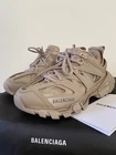 Elevate your athletic game with these stylish Balenciaga Track sneakers. The dark kaki mesh upper material provides breathability and flexibility for comfort during gym training, walking, or running. The non-slip sole and straps ensure safety and a secure fit. These women's shoes come in UK size 3, US size 6, and EU size 36. The Balenciaga brand logo is accented on the sneakers, adding a touch of style to your workout attire. These sneakers are a perfect addition to your athletic shoe collection.Condition of the item is New with box and bag. Shipped asap by USPS Priority Mail.