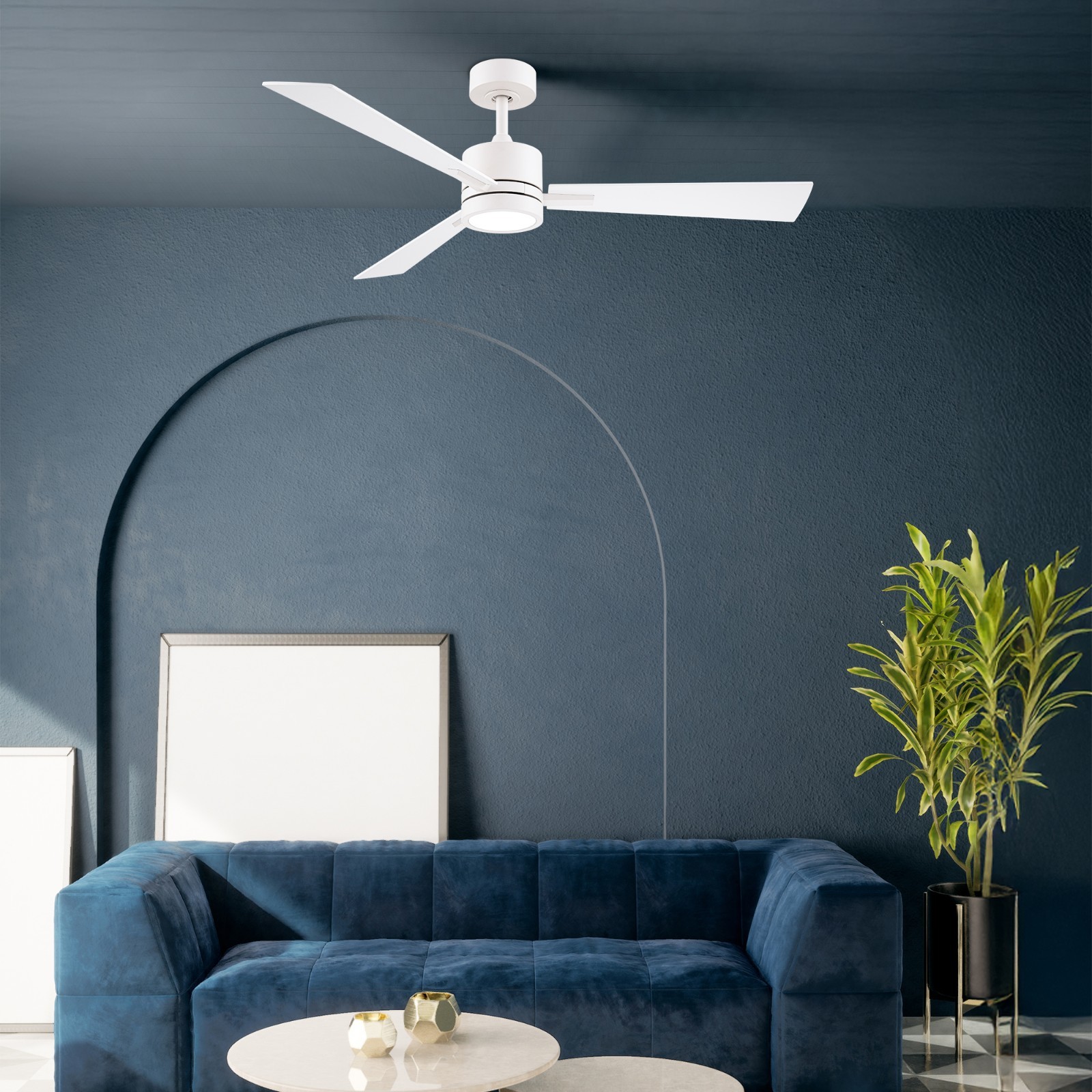 Bali Smart 3-Blade Ceiling Fan 2700K-6000K CCT Selectable LED Light Kit with Remote Control and Reversible Blades Works With iOS or Android App. SMART: APP-enabled controls, download the Smart Life app on your iOS or Android device to adjust fan speed, change light kit color temperature and brightness, set schedules, grouping, and toggle summer/winter mode. LOCAL CONTROLS: Installs onto an on/off wall switch to easily switch power on and off. Includes an intuitive white remote control with wall mounting cradle for seamless controls of all basic fan and light functions. EFFICIENT AND SILENT: Powered by ultra-efficient and completely silent 6-Speed Reversible DC motor, these fans are up to 70% more energy-efficient than traditional fans and undergo rigorous testing to ensure smooth, wobble-free performance. CUSTOMIZABLE LIGHTING: Features a replaceable LED luminaire with brightness control range 100% to 10% and multiple color temperature range (2700K-6000K and everything in-between). CERTIFICATIONS & INSTALLATION: ETL, cETL, UL, cUL, and CSA certified for covered indoor or outdoor use. Compatible with sloped ceilings up to 32 degrees. Includes a 6in downrod, additional downrods can be purchased separately for longer lengths. Suggest: Modern Forms Downrod XF-XX. STANDARDS: ETL & cETL UL #1598 Listed for Wet Locations. Five year manufacturer's warranty.