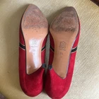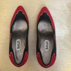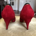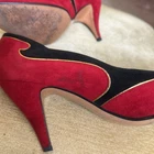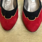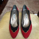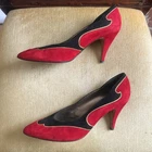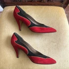 Step out in style with these elegant vintage Bally red and black with gold suede heels. Perfect for any occasion, these shoes offer both comfort and sophistication. Size 8.5 M Leather (suede) upper Leather soles Leather lining Heel height is a bit shy of 3.5 inches There are some marks on the inner side of the left shoe, but they are not visible when worn (please refer to pics. for details). For the 1980s vintage shoes, these are in excellent condition. Hello & Welcome! All sales are final! Pictures are the best part of the description for style/details. Please ask questions before buying, No cancellations. No returns. Read entire description and see all photos. Not responsible for fit . I do not accept returns for size. If you need any additional measurements please let me know BEFORE making your purchase. Measurements are approximate / colors may appear slightly different in person Thanks for looking! Check out my other great items, I will gladly combine shipping. I appreciate your business and hope you'll add me to your favorites!