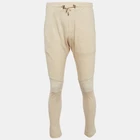 These Balmain jogger pants combine luxury and comfort, featuring cream colored cotton and linen with paneled knees and a drawstring closure.Certified by The Luxury Closet - This item has gone through a detailed authentication process overseen by our experts. We offer a lifetime guarantee of authenticity on all our items. Import duties, taxes and charges are not included in the item price. These charges are the buyers responsibility. Please check with your country’s customs office to determine what these additional cost will be prior to buying. Our eBay Store About Us Contact Us Add to Favorite Sellers Balmain Cream Cotton Paneled Knit Jogger Pants M $213.4 These Balmain jogger pants combine luxury and comfort, featuring cream colored cotton and linen with paneled knees and a drawstring closure. Product Details Brand Color Cream Dimensions Material Cotton Knit Size M Outsole Width Outsole Length Heel Height Includes The Luxury Closet Packaging Certified by The Luxury Closet This item has gone through a detailed authentication process overseen by our experts. We offer a lifetime guarantee of authenticity on all our items. How We Check The in-house team of experts at The Luxury Closet is highly trained to verify the authenticity and the condition of the luxury products. They ensure that only 100% authentic items are put on sale.The evaluation process is unique with its own mix of assessment criteria and differs according to the category. Each item is evaluated based on the following combination of hallmarks, hardware, stitching, symmetry, material, craftsmanship, stamping, codes, hologram stickers, and packaging. Our authenticators also check if the items have been modified or amended (e.g., aftermarket diamonds, replaced batteries, repaired bags, etc.) International Buyers Import duties, taxes and charges are not included in the item price. These charges are the buyers responsibility. Please check with your country’s customs office to determine what these additional cost will be prior to buying.
