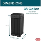 Baltimore Outdoor Waste Bin Measures 34.4 in. H x 16.14 in. W x 16.14 in. D Features a double lid to efficiently conceal trash bags Low-maintenance waste bin resists rotting, rust, or decay Your outdoor waste bin doesn't have to be a hassle or an eyesore, the Keter Baltimore Outdoor Waste Bin is a reliable and elegant alternative to the usual bins. This outdoor trash can is made of a highly durable, weather-resistant resin. Double-walled construction and a double lid ensure that you'll never have a mess all on your sidewalk or driveway if the bin is tipped over. The wood look with black finish allows the waste bin to blend right in with the rest of your house. Use 30 Gal. to 39 Gal. trash bags (not included). Bucket/Tub Material: Plastic Capacity: 39 GA-Gallon Color: Black Color Family: Black Indoor/Outdoor: Outdoor Lid/Top Mechanism: Hinged Location: Kitchen Material: Resin Pack Size: 1 Returnable: 90-Day Shape: Square Trash and Recycling Features: Handle(s),Reusable Trash and Recycling Product Type: Trash Can Certifications and Listings: No Certifications or Listings Product Depth (in.): 16.14 in Product Height (in.): 34.4 in Product Width (in.): 16.14 in