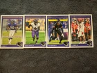 The product is a lot of four standard-sized 2024 Panini Score sports trading cards featuring the Baltimore Ravens football team. These cards are part of the base set manufactured by Panini for the 2024 season. Each card likely showcases different players or moments from the Ravens' season. This lot would be a great addition to any football card collection, especially for fans of the Baltimore Ravens looking to collect cards from the 2024 season.