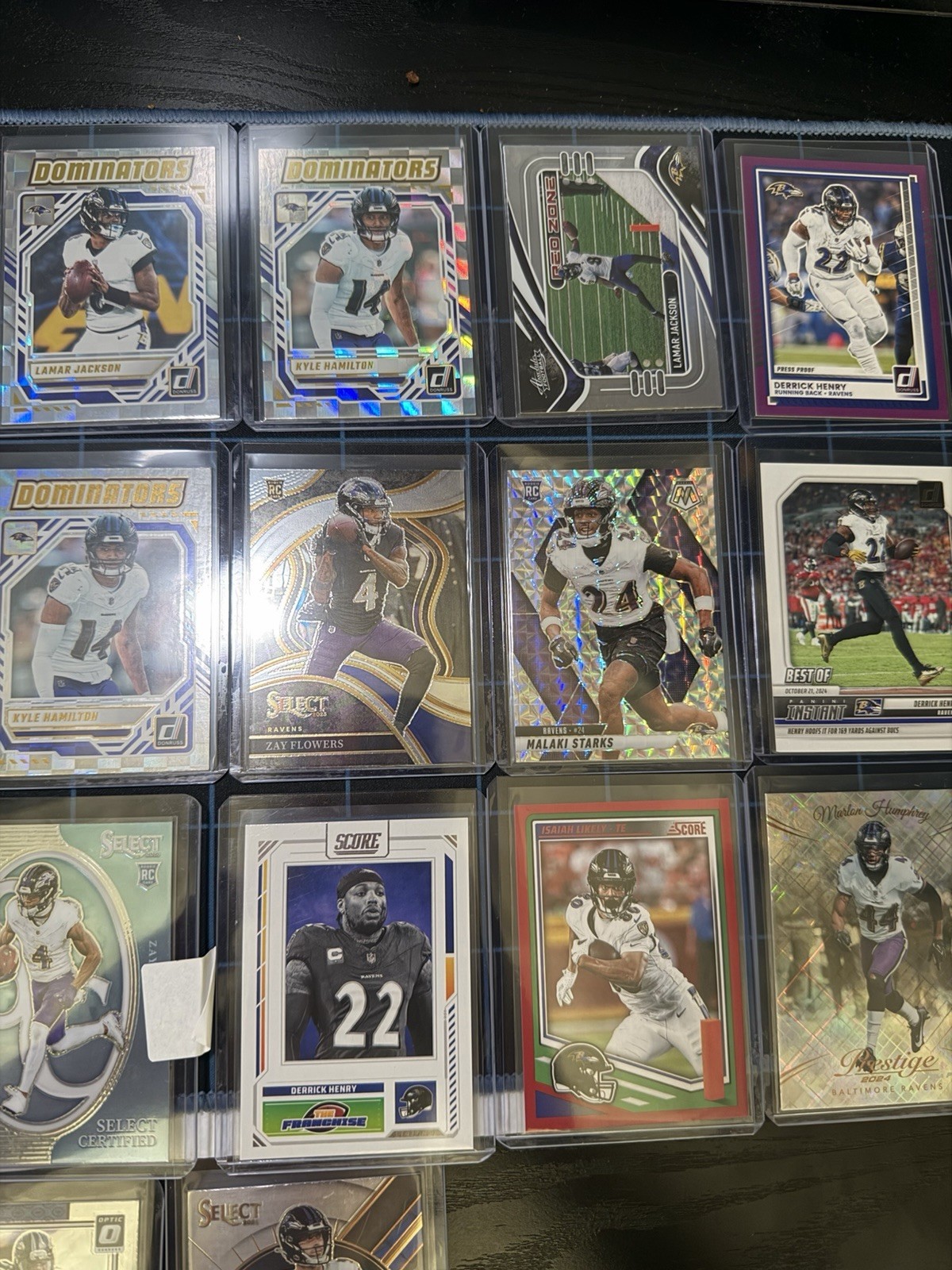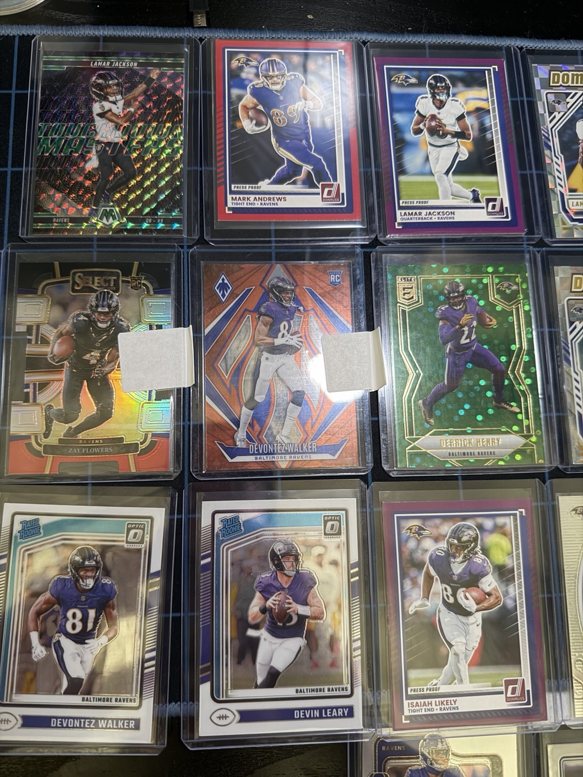 The product is a lot of standard-sized Baltimore Ravens football trading cards featuring players such as Rashod Bateman and J.K. Dobbins from the National Football League (NFL). The cards are original and made of card stock, with some featuring rookie and insert designs. Manufactured by Panini, the cards are in English and do not come with autographs. This collection would be a perfect addition for any fan looking to add to their collection of Baltimore Ravens memorabilia, especially with the inclusion of players from the playoffs and Super Bowl-involved teams.